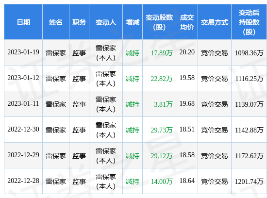 证券之星讯,根据1月20日市场公开信息、上市公司公告及交易所披露数据整理,矩子科技(300802)最新董监高及相关人员股份变动情况:2023年1月19日公司监事雷保家共减持公司股份17.89万股,占公司总股本为0.0688%。变动期间公司股价上涨0.4%,1月19日当日收盘报20.23元。