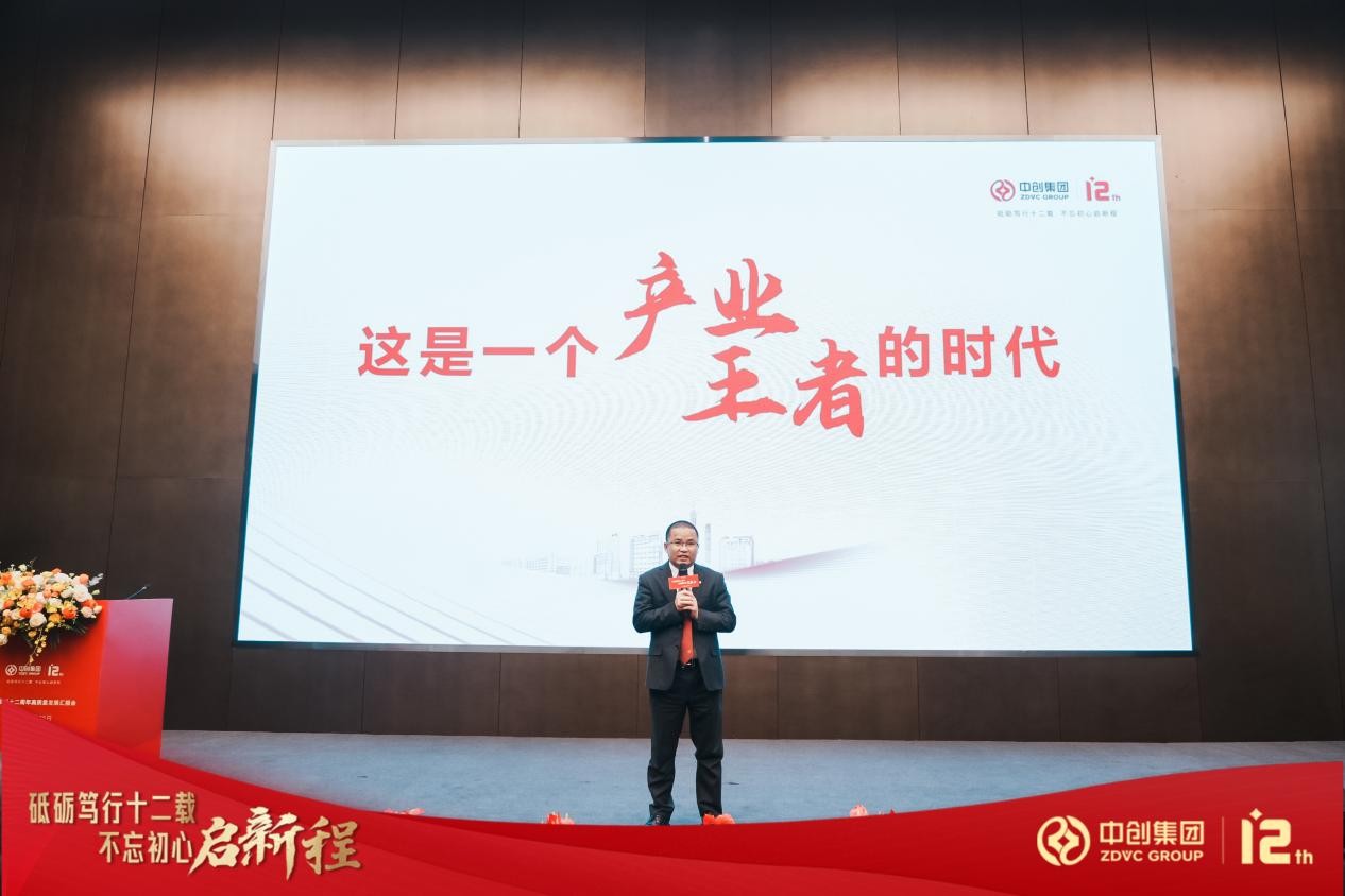 活动伊始,中创集团董事长舒元向莅临活动现场的各位产业伙伴表示热烈欢迎,并诚挚地向大家分享了中创集团十二年来发展的心路历程。他表示,自2011年成立以来,中创集团共经历了四个发展阶段,秉持着不断自我批评和自我超越的精神,在迭代创新中不断发展演变。如今,中创集团凭借多年累积的实践经验,逐步完善产业服务体系,构建创新产业生态,从一间只有两千多平米的孵化器到建设出多个高质量产业园区,中创集团实现了从量变到质变的突破。如今,已满十二周岁的中创集团将继续怀抱着成为世界一流的产业创新中心的愿景,奋力一纪,可以远矣!